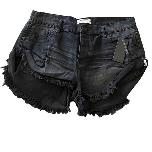 | Characteristics of goods | Brand: One x One Teaspoon.5”Inseam: 2”Rise: 10”Tags: Jean Shorts, Daisy Dukes, Hard to find Made for Free PeopleMaterial: 100% CottonFeatures: Relaxed Fit, Long Rise, Twisted Cuff Hem, Button Fly, Frayed Raw Hem, Four button closure, comes from a smoke free home Flat lay Measurements Waist: 17. | ||