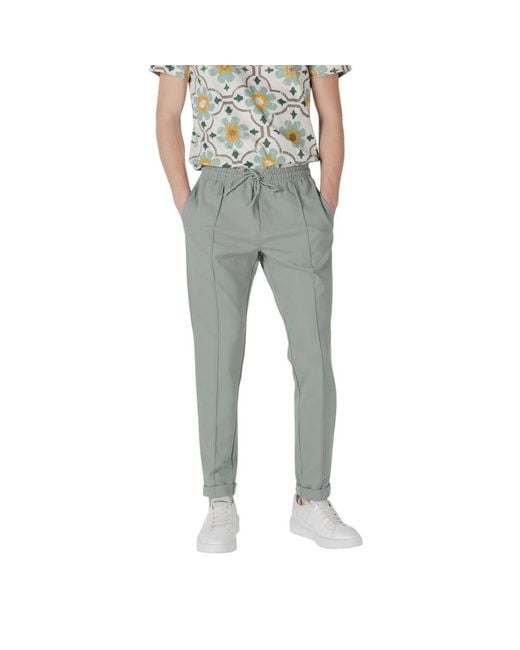 | Characteristics of goods | Metal logo plaque Adjustable drawstring waist Elasticated cuffs Polyester Tailoring-inspired finish Key attributes: Green The design pairs a tailoring-inspired seam detail with a subtle metal logo for a contemporary casual look. Stretch fabric Central seam/pleat detail 5% elastane Iron at max 110°C. Hang to dry. Color: gray Welt pockets Product details: Antony Morato Carrot Fit Sweatpants combine a modern, tapered silhouette with a stretch-blend fabric for comfortable everyday wear. Machine wash at 30°C. Dimensions & fit: Carrot fit (wider at the thigh, narrows toward the ankle) 40% cotton Composition & care: 55% polyester Do not bleach. | ||