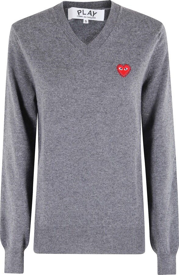 | Characteristics of goods | Details: Sweater - Comme des garcons play - Knit rhinestone emblem pattern - Grey color - Long sleeves - V-neck - Rhinestone logo patch on side | ||