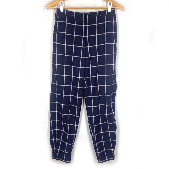 Derek Lam Collective Dress Pants Navy Blue Windowpane Plaid Trouser High Rise 36 Straight Leg