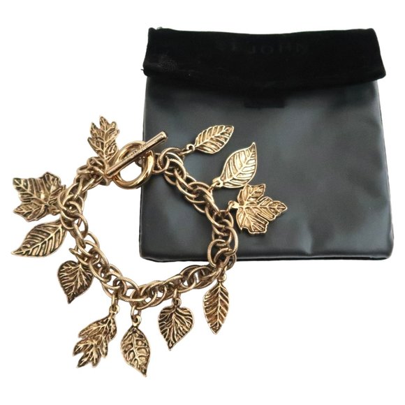 | Characteristics of goods | Toggle closure.Includes pouch.Antique gold hardware finish.Approx 7 3/4" circumference. St John multi leaf charm bracelet.Very good condition. | ||