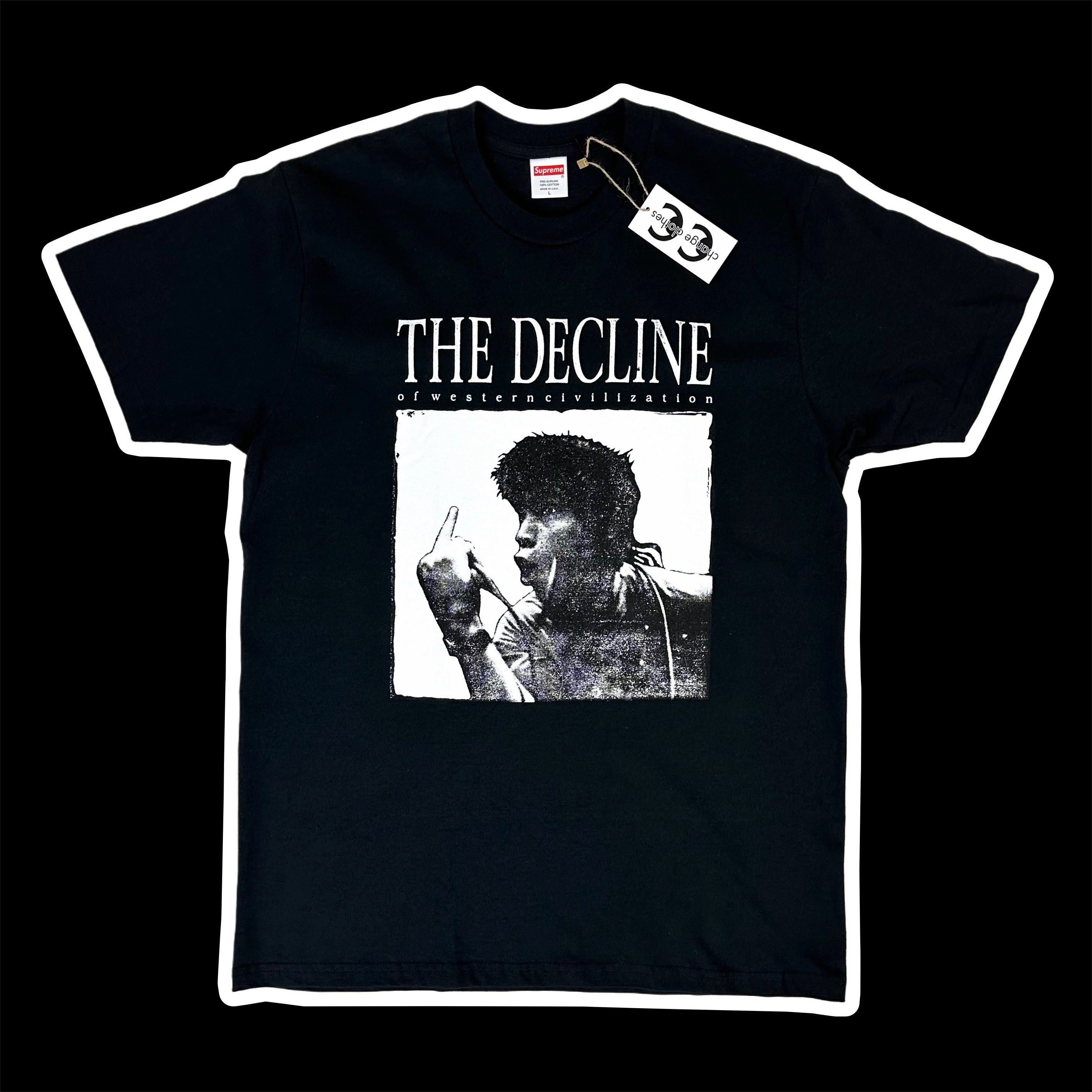 | Characteristics of goods | Seller Description supreme decline tee released 2017 graphic refers to an infamous 1981 documentary exposing the underground los angeles punk rock scene — one that was flat out ignored by the mainstream press in those times in 2016 the library of congress selected “the decline of western civilization” to be preserved for its historically, aesthetically & culturally significant elements prints on front & back like new condition collect #changeclothes Black | ||