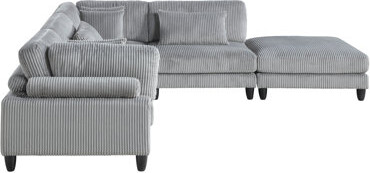 Hokku Designs 5pc Modular Sectional Set Gray Corduroy Upholstery 2x Armless Chairs 2x Corner Seats 1x Ottoman Pillows Living Room Furniture Sofas & Loveseats