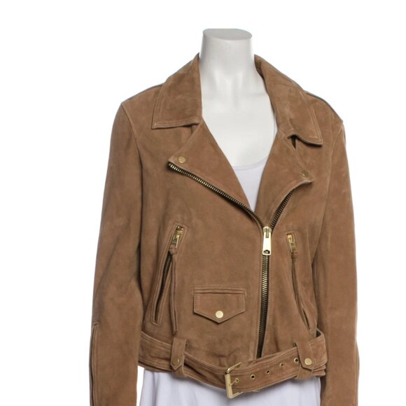 | Characteristics of goods | 75"Waist: 37"Shoulder: 17. Good condition. AllSaints Goat Leather Biker Jacket Size MBrown/TanMoto stylePointed CollarZip Pockets & Zip ClosureRemovable beltSoftest leather similar to suede.25"Length: 24"Sleeve: 29.Estimated item measurementsBust: 37. Light wear on the leather.5" Classy, edgy vibe. | ||
