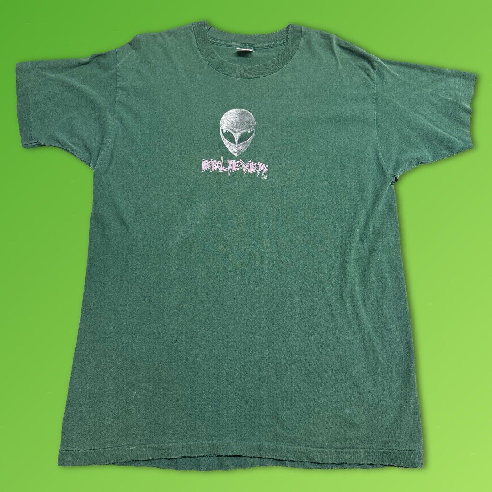 - Tops > Short Sleeve T Shirts > 1995 Alien Workshop “BELIEVER” Green Skateboard TShirt Green Short Sleeve T Shirts