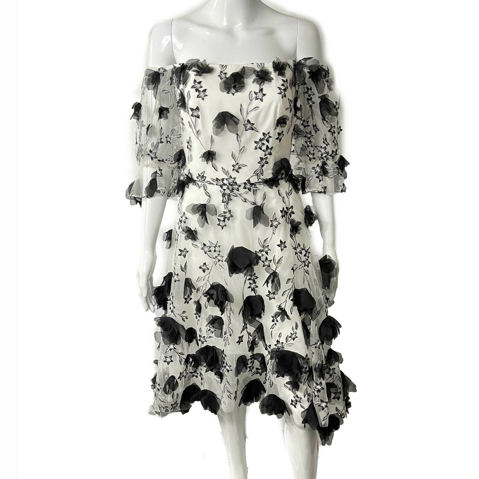 | Characteristics of goods | 68 cm Details Made In: China Material: Nylon, Polyester Size: 2 Color: Black, White Condition New w/ Tags Small stain located on back of dress near the zipper.12 cm Length: 42 in / 106. Message us for details. Seller Description Marchesa Notte - New w/ Tags - Black and White Floral Tulle Dress - Size 2 Description This Marchesa Notte dress is multi-layered with a white slip on the inside and two layers of tulle on the outside. Note: waist measurement is based on inner slip. It features a black and white floral embroidered design and black 3-D tulle flowers throughout. 11787-001 Black Sleeves are worn off the shoulder and are a blouson style.56 cm Arm: 13.8 cm Chest: 14 in / 35. Consign with Us We can sell your pre-loved items for you. The longest length of the hem measures 42" in length and the shortest part of the hem measures 32" in length.29 cm Waist: 14 in / 35. Authenticated By: RealAuthentication Rely and Trust in our years of industry experience.56 cm Hip: 28 in / 71. Measurements Shoulders: 20 in / 50. The back contains a zipper closure. It is a midi length with a high-low hem.5 in / 34. | ||