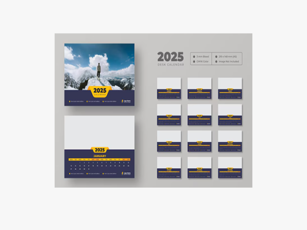 Optimize your workspace with our A5 Desktop Calendar (Landscape), designed for efficiency and elegance.